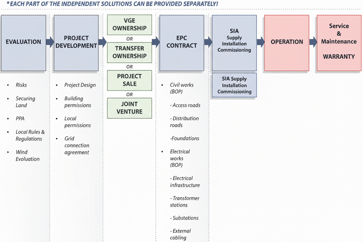 Varna Green Energy provides complete project management for wind park projects. Our services include consultation, coordination, cost planning, and project preplanning. All services and steps can also be offered separately, according to the contractor’s needs.